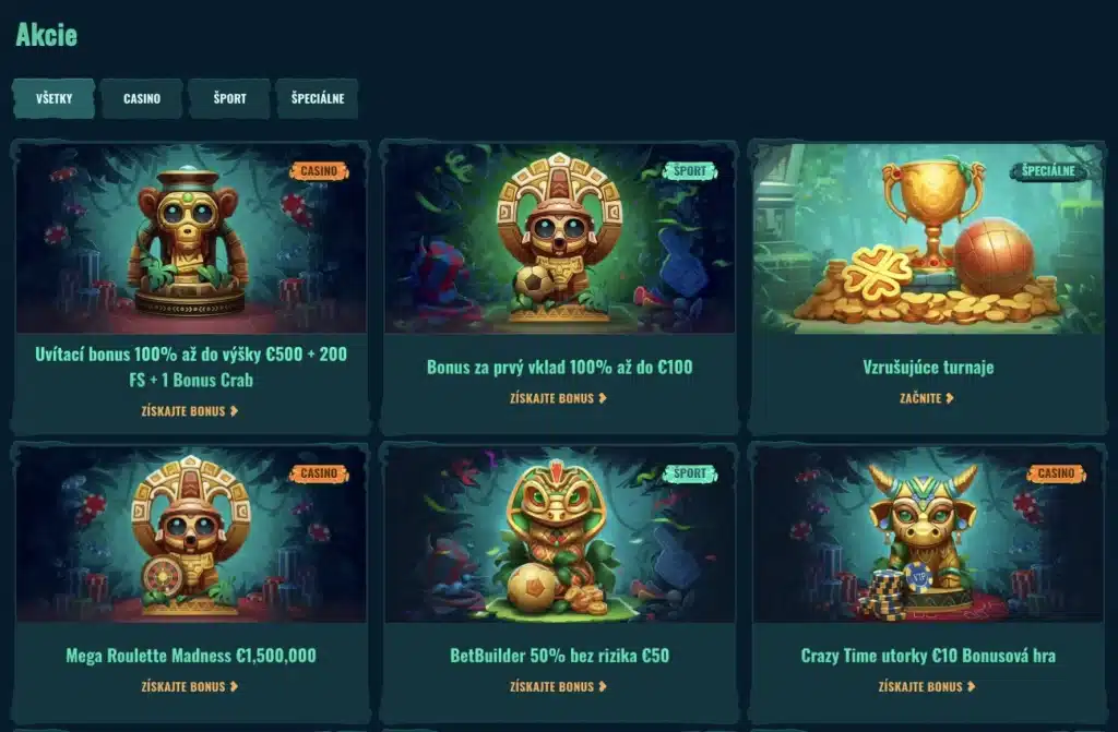 - 200 free spinov na vybrané obľúbené automaty + 1 bonus crab.